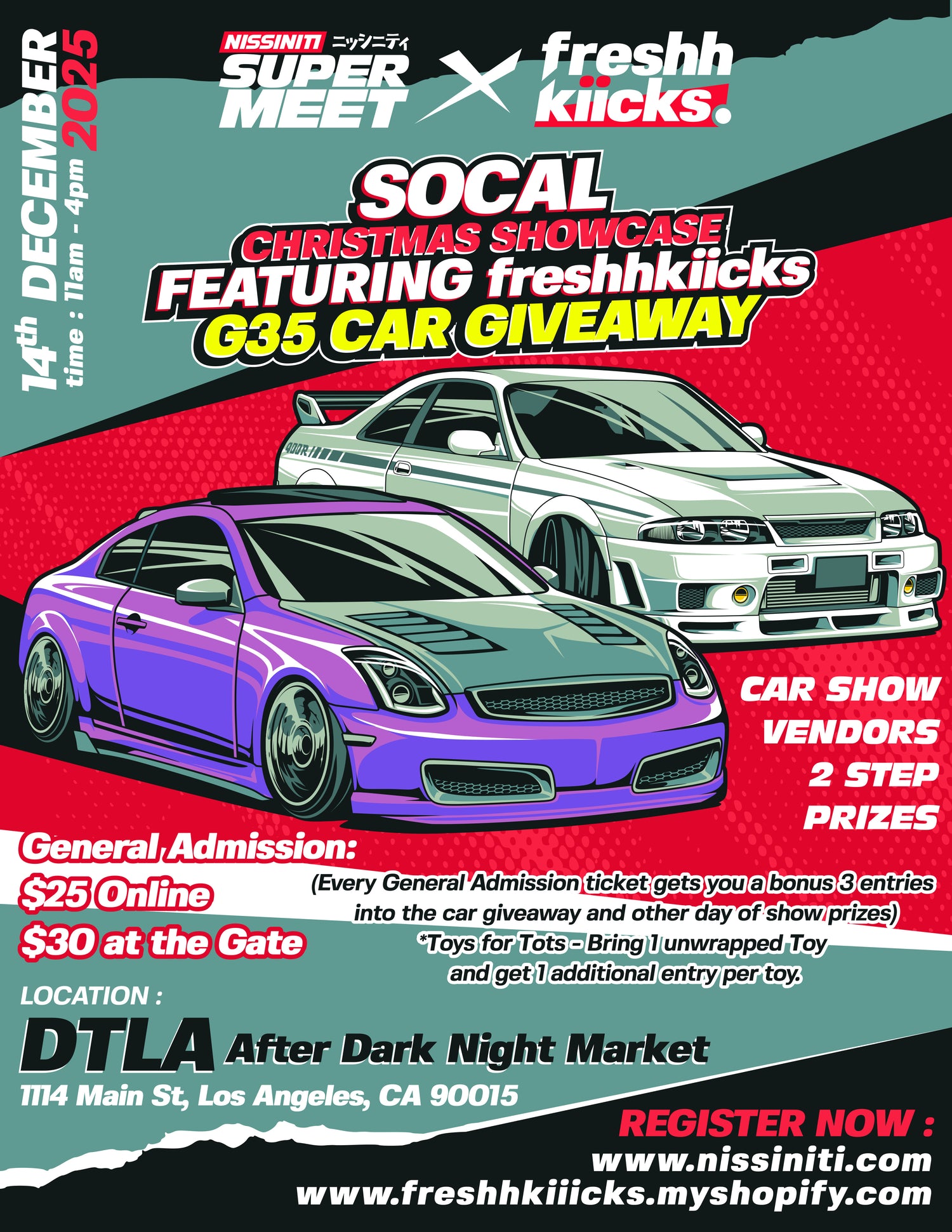 SOCAL CHRISTMAS SHOWCASE β G35 GIVEAWAY x Nissiniti SuperMeet x freshhkiicks DTLA β’ December 14, 2025 β’ 11AMβ4PM